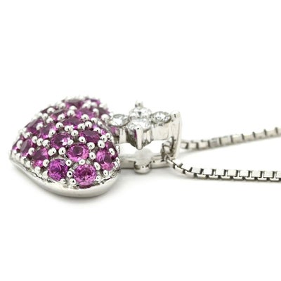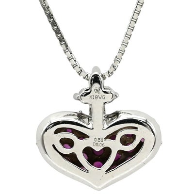 ネックレス ルビー ダイヤペンダント ホワイトゴールド ダイヤモンド 赤 ハートモチーフ ラウンドミックスカット 【中古】