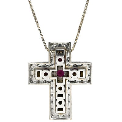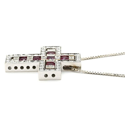 ダミアーニ DAMIANI ネックレス ベルエポック ホワイトゴールド ペンダント 750 18金 クロス 十字架 ダイヤ ルビー 【中古】