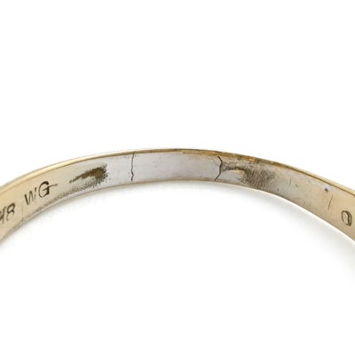 細かな擦れや小傷、全体的にロジウムメッキの剥がれや打痕、画像の様なリング内側に線ヒビがございます。