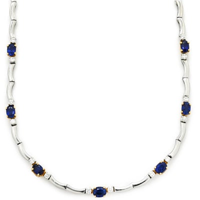 ピキョッティ PICCHIOTTI ネックレス ブルーサファイア バーリンク ブルー×ホワイトゴールド Au750 18金 WG ダイヤ 0.60ct ステーション ネックレス 【中古】