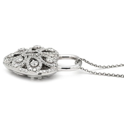 ティファニー Tiffany & Co ネックレス フィリグリー ハート ダイヤペンダント ホワイトゴールド K18 WG 南京錠 パドロック 鍵 パヴェダイヤ 【中古】