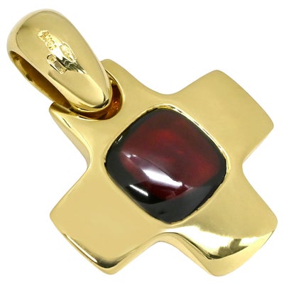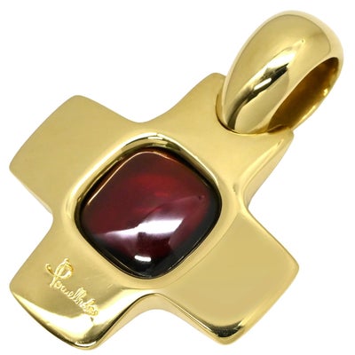 ポメラート Pomellato ペンダントトップ クロスモチーフ ワインレッド×イエローゴールド Au750 18K 18金 ミックスカボション 十字架 大粒 ガーネット 【中古】