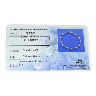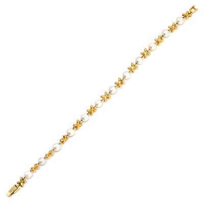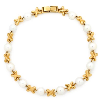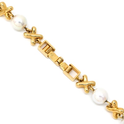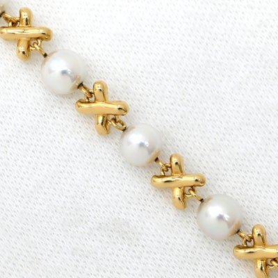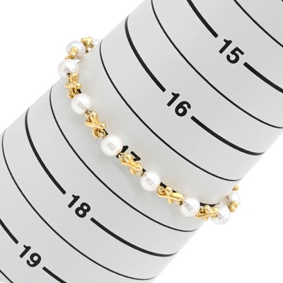 タサキ TASAKI ブレスレット クロスモチーフ パール パールホワイト×イエローゴールド TASAKI K18 Au750 ステーションブレスレット 真珠 アコヤ 【中古】
