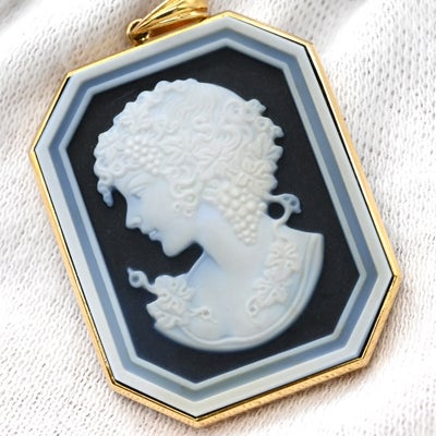 タサキ TASAKI ペンダントトップ カメオ ホワイト×ブルー×イエローゴールド オクタゴンフレーム チャーム ヴィンテージ 浮き彫り 彫刻 【中古】