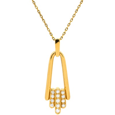 ミキモト MIKIMOTO ネックレス ダイヤ 0.20ct イエローゴールド MIKIMOTO Au750 18K 18金 YG ヴィンテージ トリプルバー パヴェ 13P 【中古】