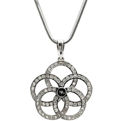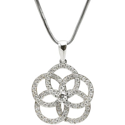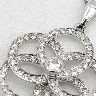 ネックレス ダイヤ ペンダント ホワイトゴールド K18WG Au750 18K 18金 サークルリング フラワーモチーフ 花 【中古】