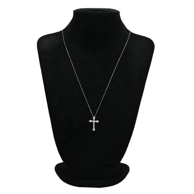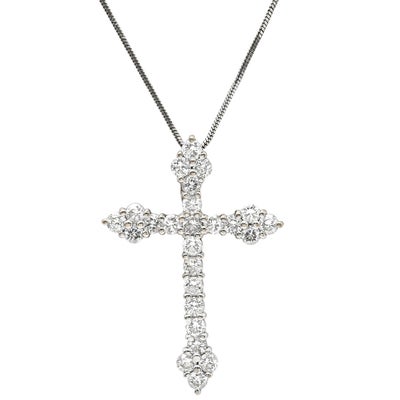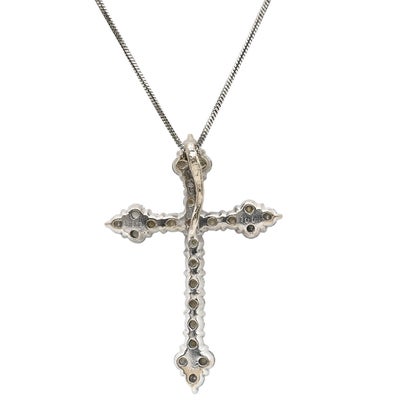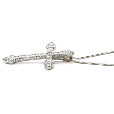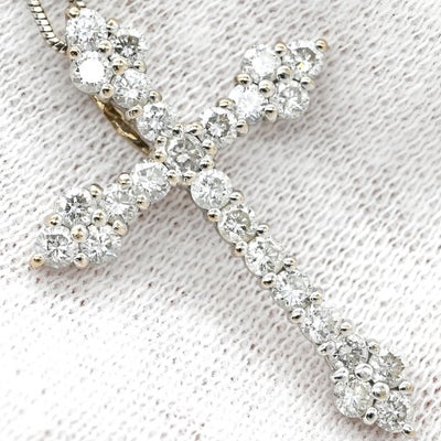 ネックレス ダイヤ 1.00ct クロス ペンダント ホワイトゴールド 十字架 25石 25P ブリリアントカット 18K 750 WG 18金 【中古】