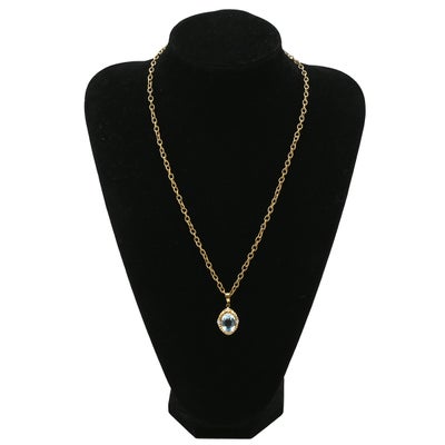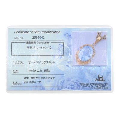 ネックレス ブルートパーズ ペンダント イエローゴールドXプラチナシルバー 青 ブルー ライトブルー オーバルミックスカット ラージ 大粒 【中古】
