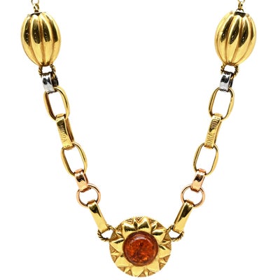 シドラ SIDRA ネックレス 本琥珀 太陽モチーフ ステーション オレンジ×イエローゴールド×ホワイトゴールド×ピンクゴールド Au750 18K ネックレス ブレス 2WAY コンバーチブル 【中古】
