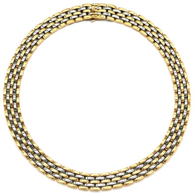 カルティエ Cartier ネックレス マイヨン パンテール 5連 3ロウ イエローゴールド×シルバー Au750 K18 ツートーン YG×SS ヴィンテージ 【中古】
