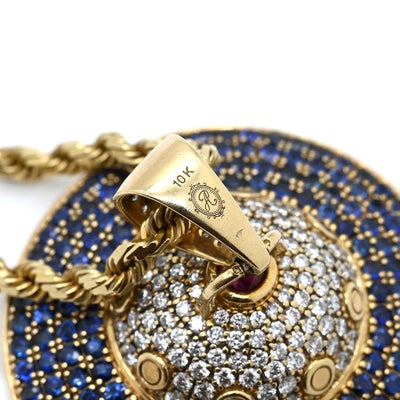 AVALANCHE アヴァランチ ネックレス UFOモチーフ ペンダント イエローゴールド 青 赤 10金 10K YG サファイア ルビー ダイヤ オーダーメイド品 【中古】