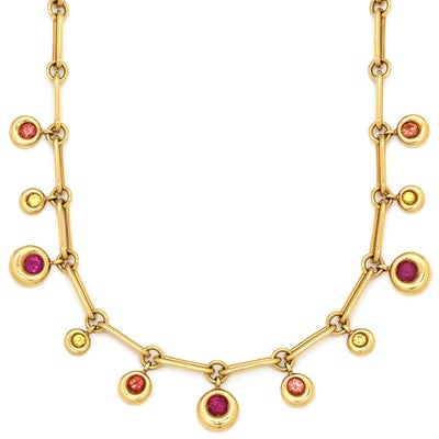 ショーメ CHAUMET ネックレス アノー ルビー サファイア レッド×オレンジ×イエロー×イエローゴールド 18K 18金 750 【中古】