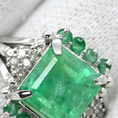 リング 指輪 エメラルド ダイヤモンド リング ホワイトゴールド グリーン 緑 スクエア 9号 【中古】