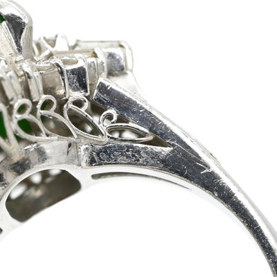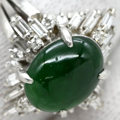 リング 指輪 ヒスイ ダイヤリング プラチナシルバー 翡翠 グリーン カボションカット 13.5号 【中古】