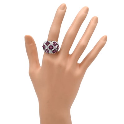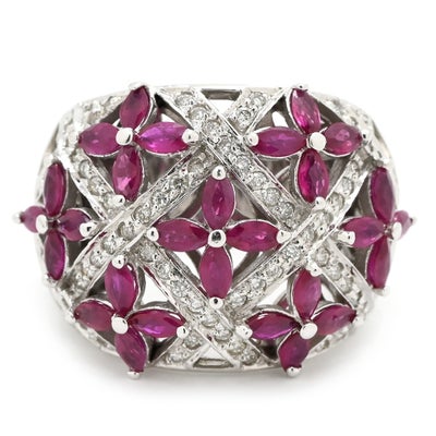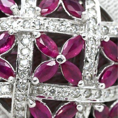 リング 指輪 ラティス ダイヤリング ホワイトゴールド WG 14K ダイヤモンド ルビー フラワークラスター 16号 【中古】