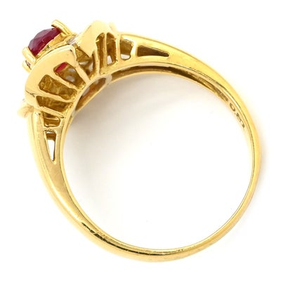 リング 指輪 ルビー ダイヤ レッド×イエローゴールド K18YG Au750 18K 18金 赤 レッド ヘイローデザイン フラワーモチーフ 15号 【中古】