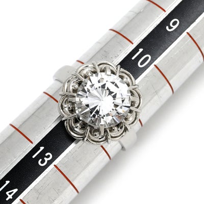 リング 指輪 色石 ソリティア プラチナシルバー Pt900 プラチナ 花 フラワーモチーフ 菊爪 エントラージュ 11.5号 【中古】