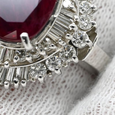 リング 指輪 ルビー 2.32ct ダイヤ 1.12ct レッド×プラチナシルバー 赤 1石 1粒 プラチナ パヴェ ヘイローデザイン オーバル 13号 【中古】