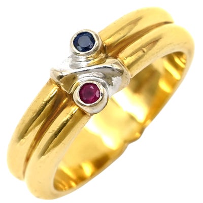 ティファニー Tiffany & Co リング 指輪 シグネチャー ルビー サファイア イエローゴールド×ホワイトゴールド T&Co. Au750 18K YG WG 10号 【中古】