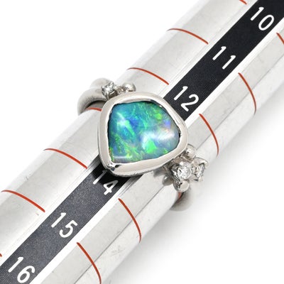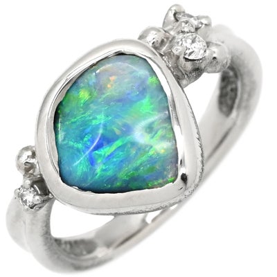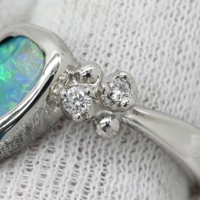 真々田誠次 Seiji Art Jewelry リング 指輪 ボルダーオパール ダイヤ ブルー×プラチナシルバー Pt900 遊色 プレイオブカラー フリーシェイプ ハンドメイド 13号 【保証書】 【中古】