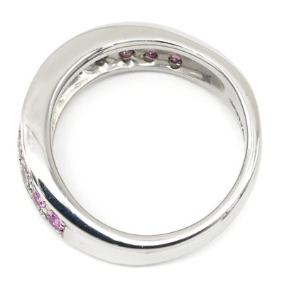 ランバン LANVIN リング 指輪 ピンクサファイア ダイヤ ピンク×プラチナシルバー Pt900 パヴェ グラデーション 幅広 ハーフエタニティ 13号 【中古】