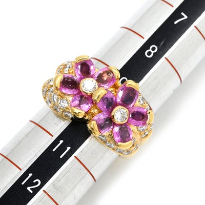 ポンテヴェキオ Ponte Vecchio リング 指輪 ピンクサファイア ダイヤ フラワーモチーフ ピンク×イエローゴールド Au750 18K 18金 YG 花 10号 【中古】