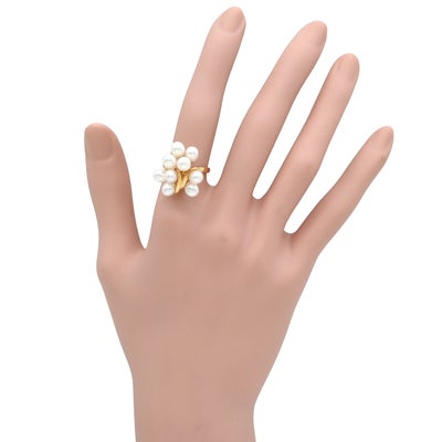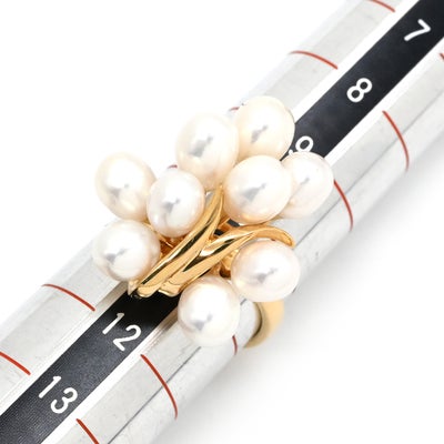 タサキ TASAKI リング 指輪 パール リング パールホワイト×イエローゴールド K18YG クラスター真珠 オーバル型パール 10.5号 【中古】