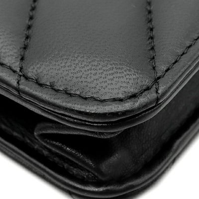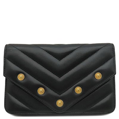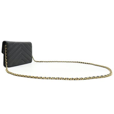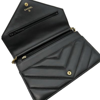 シャネル CHANEL チェーンウォレット シェブロン Vステッチ レザー ラムスキン ブラック ゴールド金具 チェーンショルダー CCボタン 黒 26****** 【箱】 【中古】