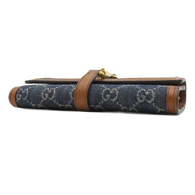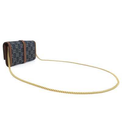 グッチ GUCCI チェーンウォレット ジャッキー1961 チェーン付き ウォレット レザー GGジャガードデニム ブルー×ブラウン ゴールド金具 デニム ショルダー 652681 【保存袋】 【中古】