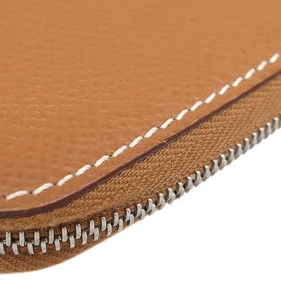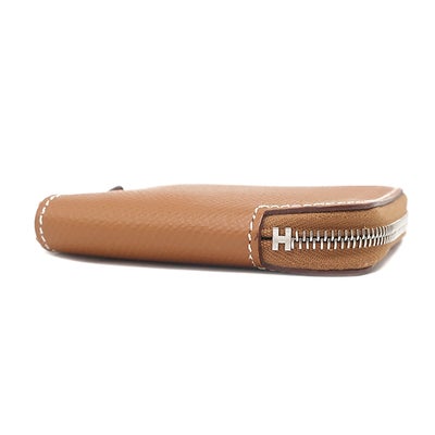 エルメス HERMES コインケース アザップ シルクイン ミニ コインケース ヴォーエプソン ゴールド シルバー金具 茶 ラウンドファスナー Z刻印 【中古】