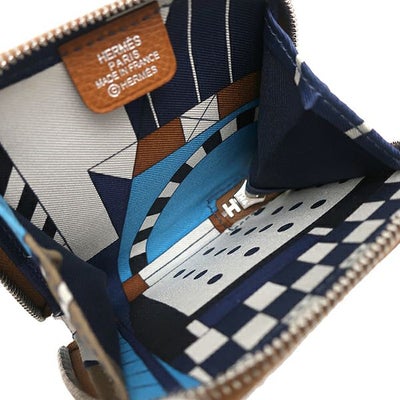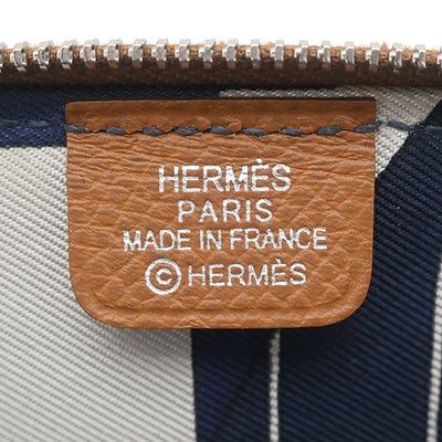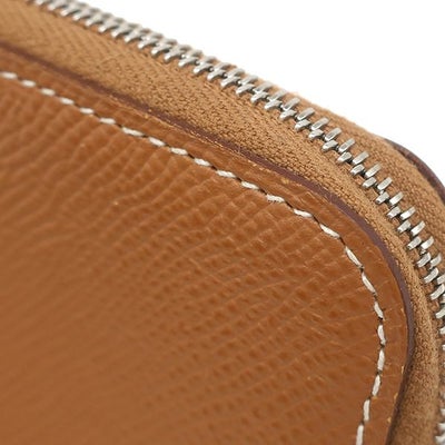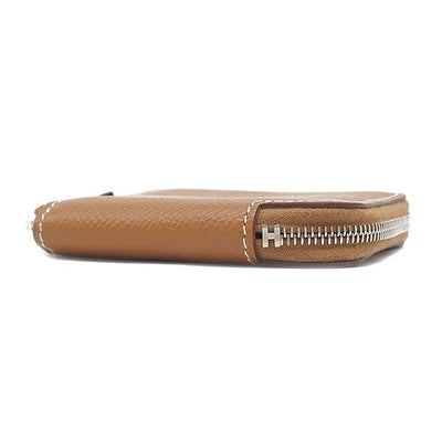 エルメス HERMES コインケース アザップ シルクイン ミニ コンパクト ヴォーエプソン ゴールド シルバー金具 茶 ラウンドファスナー Z刻印 【箱】 【中古】