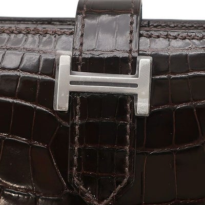 エルメス HERMES 二つ折り財布 ベアンコンパクト アリゲーター ハバナ シルバー金具 茶 クロコ K刻印(2025年製) 【箱】 【中古】