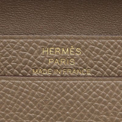 エルメス HERMES 二つ折り財布 ベアンミニ ヴォーエプソン エトゥープ ゴールド金具 グレージュ コンパクト財布 コインケース Y刻印 【保存袋】 【中古】