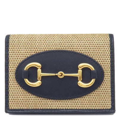 グッチ GUCCI 二つ折り財布 ホースビット 1955 カードケース ウォレット レザー キャンバス ベージュ×ネイビー ゴールド金具 日本限定 621887 H58AG 2599 【箱】 【中古】