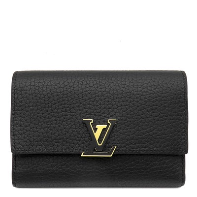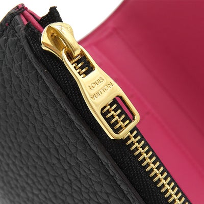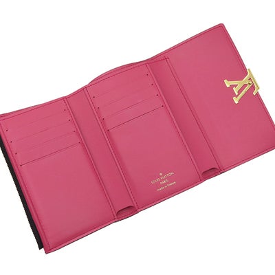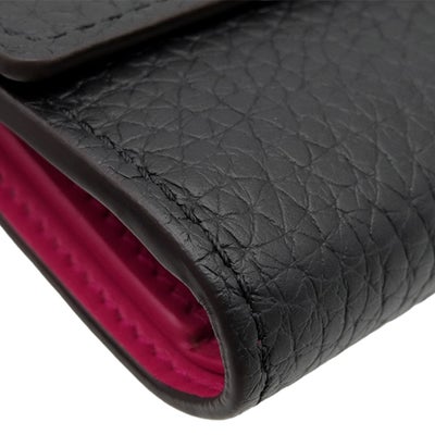 ルイヴィトン LOUIS VUITTON 三つ折り財布 ポルトフォイユカプシーヌ コンパクト レザー トリヨンレザー ノワール×ホットピンク ゴールド金具 黒 ピンク ブラック金具 M62157 RFID 【中古】