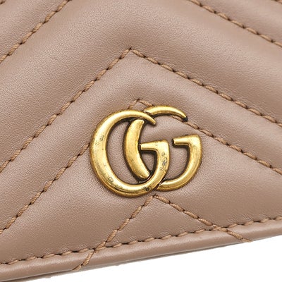 グッチ GUCCI 二つ折り財布 ダブルG カードケース ウォレット レザー シェブロンキルティングナッパレザー ピンクベージュ ゴールド金具 GG 466492 【保存袋】 【中古】