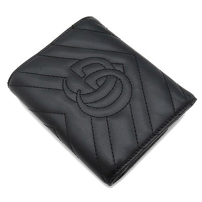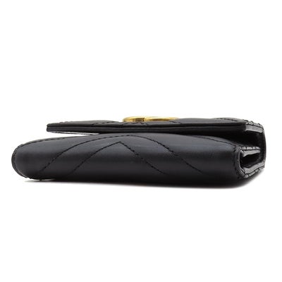 グッチ GUCCI 三つ折り財布 GGマーモント レザー ブラック ゴールド金具 黒 474802 【保存袋】 【中古】