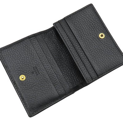 グッチ GUCCI 二つ折り財布 ダブルG カードケース ウォレット レザー ブラック ゴールド金具 プチマーモント コンパクト 456126 【中古】