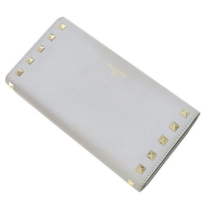 ヴァレンティノ VALENTINO 長財布 ロックスタッズ レザー グレー ゴールド金具 【箱】 【中古】