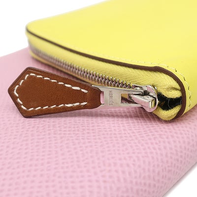 エルメス HERMES 長財布 ヌーヴォートゥーゴー ヴォースイフト ヴォーエプソン モーヴシルベストル×ライム×キュイーブル シルバー金具 ピンク 黄色 U刻印(2022年製) 【箱】 【中古】