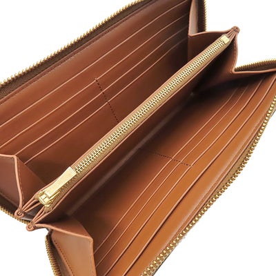 【外側】レザーに擦れや薄汚れ、生地に薄汚れ、ファスナー生地に毛羽立ち、金具に擦れや塗装剥がれ【内側】レザーに擦れや押し跡、小銭汚れ、札入れに薄汚れ【におい】保管臭 ※箱に薄汚れがございます。