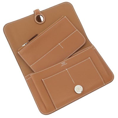 エルメス HERMES 長財布 ドゴンデュオ ドゴンGM エバーカラー ゴールド シルバー金具 茶 二つ折り財布 W刻印(2024年製) 【箱】 【中古】