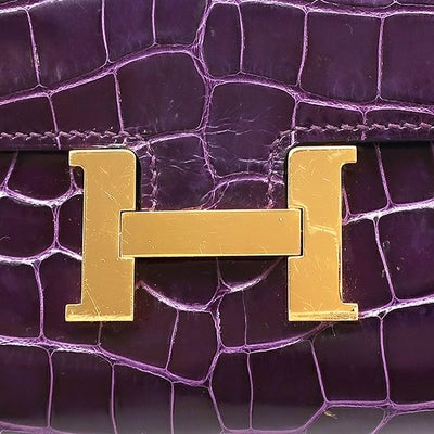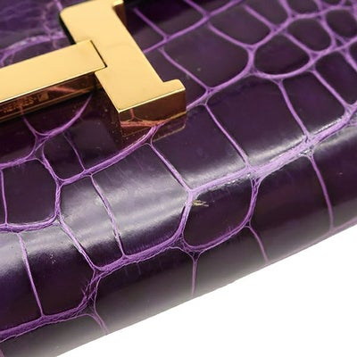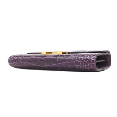 エルメス HERMES 長財布 コンスタンス トゥーゴー アリゲーター カシス ゴールド金具 紫 クロコ ショルダー U刻印 【中古】