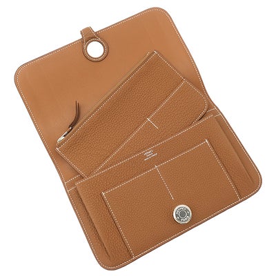 エルメス HERMES 長財布 ドゴンデュオ ドゴンGM トゴ ゴールド シルバー金具 茶 二つ折り財布 2024年製 W 【箱】 【中古】