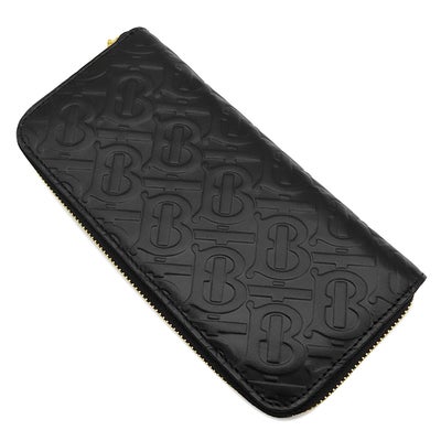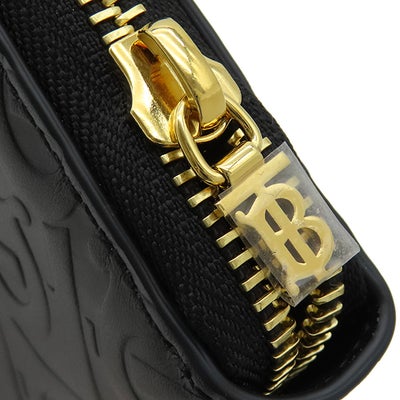 バーバリー BURBERRY 長財布 TBモノグラム エンボス レザー ブラック ゴールド金具 黒 TBロゴ ラウンドファスナー 8011601 【中古】