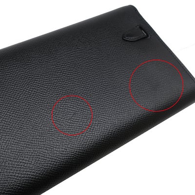 【外側】表面にスレと線スレ、コバにスレと剥がれ、ベルトにクセ、金具に小傷【内側】押し跡、線スレ、小銭入れに薄汚れ【におい】小銭臭【刻印場所】内側奥のコンパートメント左下 【保護シール箇所】ターンロック根元