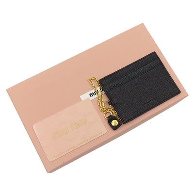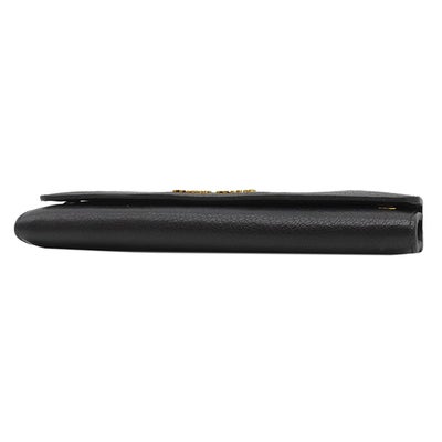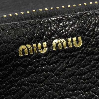 ミュウミュウ MIU MIU 長財布 二つ折り ロゴプレート ゴートレザー マドラス NERO ゴールド金具 黒 ロングウォレット カードケース付き 5MH109 【箱】 【中古】