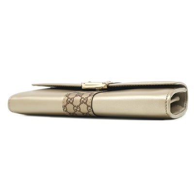 グッチ GUCCI 長財布 二つ折り財布 レザー マイクログッチシマレザー ブラック シャンパンゴールド金具 マイクログッチシマ ロングウォレット ダブルG ゴールド 233028 【箱】 【中古】