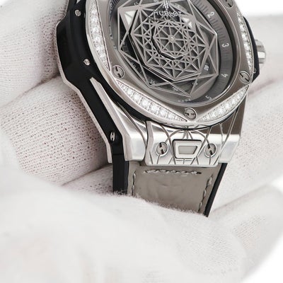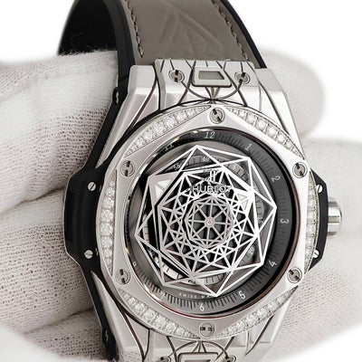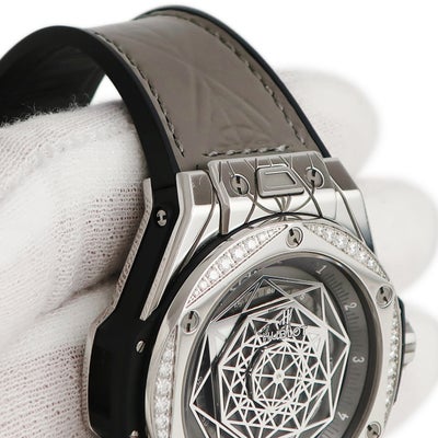 ウブロ HUBLOT ビッグバン ワンクリック サンブルー 465.SS.7047.VR.1204.MXM20 純正ダイヤ グレー 限定 メンズ 腕時計自動巻き グレー 【中古】