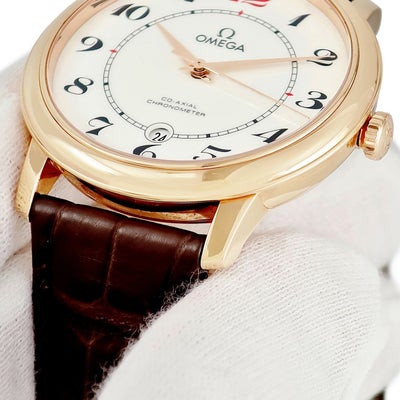 オメガ OMEGA デ ヴィル プレステージ CO-AXIAL 50周年記念 424.53.40.20.04.004 K18RG無垢 白 デイト メンズ 腕時計自動巻き ホワイト 【中古】